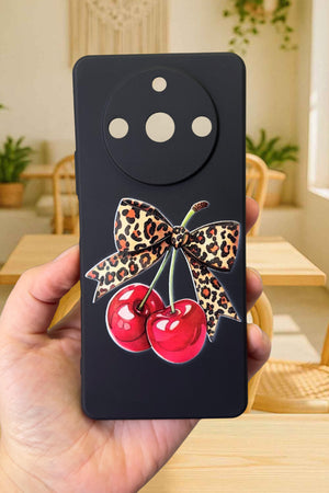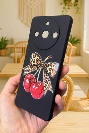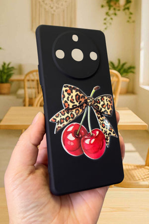 REALME 11 Pro Uyumlu Kiraz Leopar Fiyonk Desenli Silikon Darbe Emici Rubber Kılıf