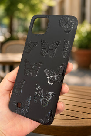 Realme C11 -SİYAH KELEBEK DESENLİ Silikon Darbe Emici Klasik Korumalı Rubber Kılıf