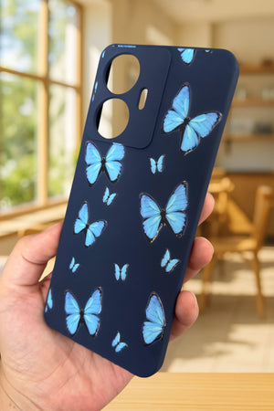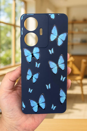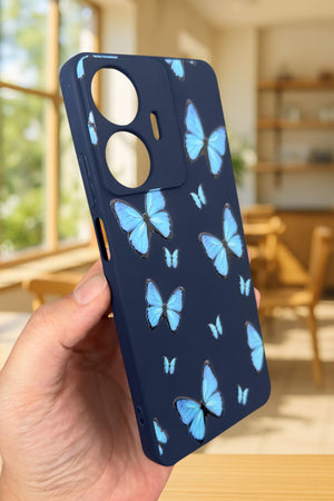 Realme C55 Uyumlu Mavi Kelebek Desenli Silikon Darbe Emici Klasik Korumalı Rubber Kılıf