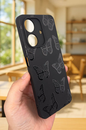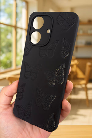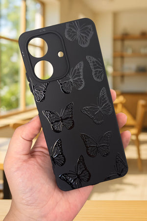 REALME NOTE 60 Uyumlu Siyah Kelebek Desenli Silikon Darbe Emici Klasik Korumalı Rubber Kılıf