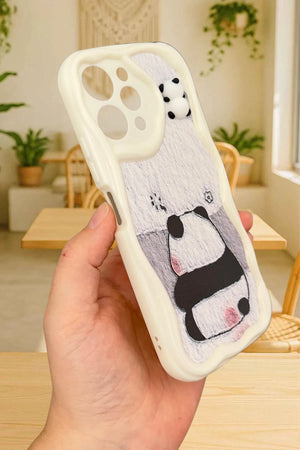 Sevimli panda temalı telefon kılıfı. Dalgalı kenarlı koruyucu tasarım. Arka yüzde gri tonlarında basit ama etkileyici panda çizimi. Üst kısımda, kamera yanında minik panda figürü. Telefon kamerasını özel şekillendirmeyle koruyor. Dokunsal ve görsel açıdan ilgi çekici doku. Minimal ve zarif görünüm. Çizilmelere ve darbelere karşı koruma sağlarken estetik sunar. Telefonu koruma ve kişiselleştirme isteyen kullanıcılara yönelik şık aksesuar.
