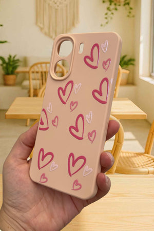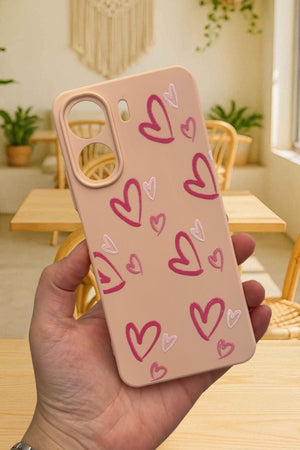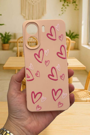 REDMİ 13C- PEMBE KALP DESENLİ Lansman Kamera Korumalı Yumuşak Silikon RUBBER Kılıf