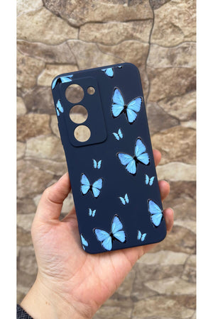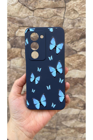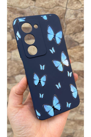 Redmi 15 Uyumlu Mavi Kelebek Desenli Silikon Darbe Emici Klasik Korumalı Rubber Kılıf