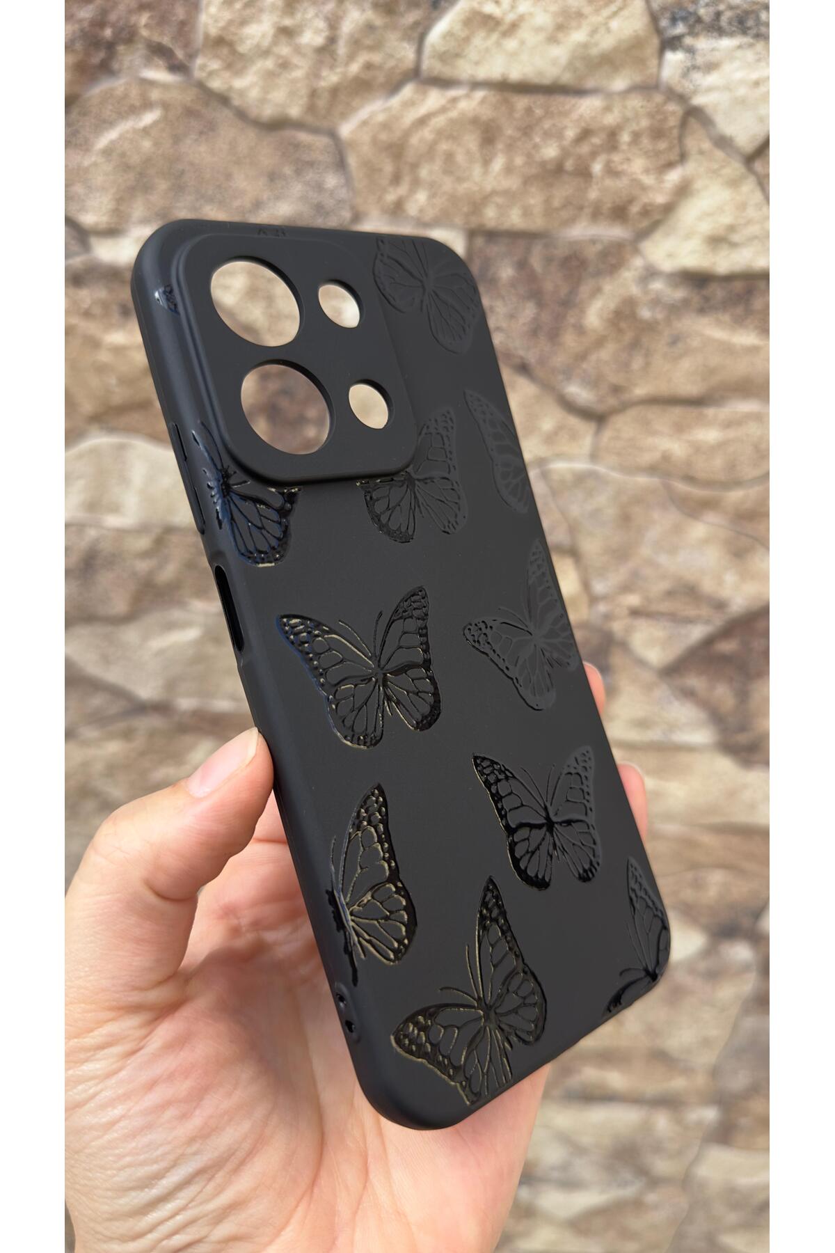 Redmi 15C Uyumlu Siyah Kelebek Desenli Silikon Darbe Emici Klasik Korumalı Rubber Kılıf