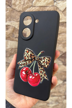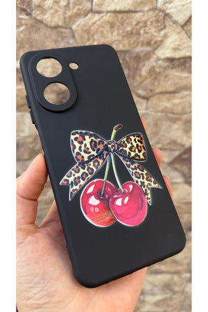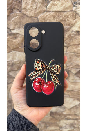 Redmi A5 Uyumlu Kirazlı Leopar Fiyonk Desenli Silikon Darbe Emici Klasik Korumalı Rubber Kılıf