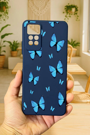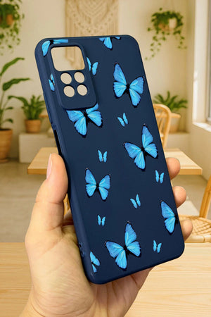 Redmi Note 11 Pro/Note 12 Pro 4G MAVİ KELEBEK DESENLİ Silikon Darbe Emici Korumalı Rubber Kılıf