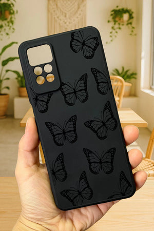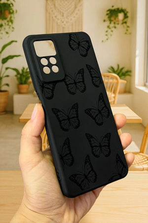 Redmi Note 11Pro/Note 12Pro4G Silikon SİYAH KELEBEKLİ Darbe Emici Klasik Korumalı Rubber Kılıf