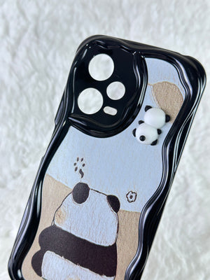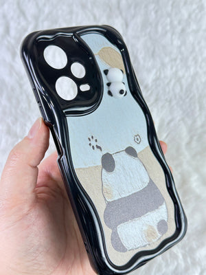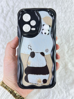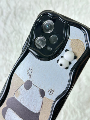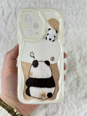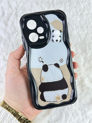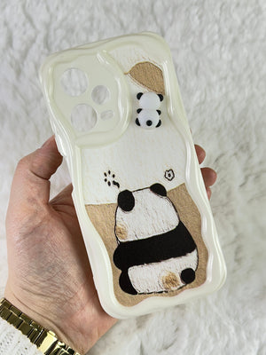 Sevimli panda temalı telefon kılıfı. Dalgalı kenarlı koruyucu tasarım. Arka yüzde gri tonlarında basit ama etkileyici panda çizimi. Üst kısımda, kamera yanında minik panda figürü. Telefon kamerasını özel şekillendirmeyle koruyor. Dokunsal ve görsel açıdan ilgi çekici doku. Minimal ve zarif görünüm. Çizilmelere ve darbelere karşı koruma sağlarken estetik sunar. Telefonu koruma ve kişiselleştirme isteyen kullanıcılara yönelik şık aksesuar.