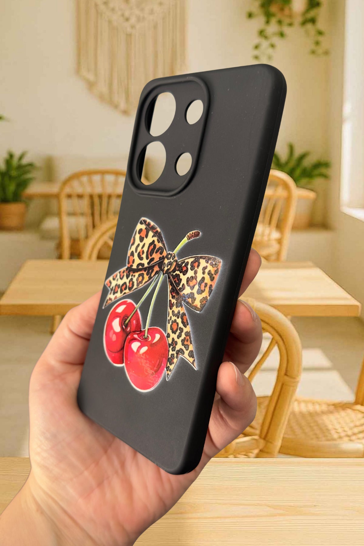 Redmi Note 13 4G Uyumlu Kiraz Leopar Fiyonk Desenli Silikon Darbe Emici Rubber Kılıf