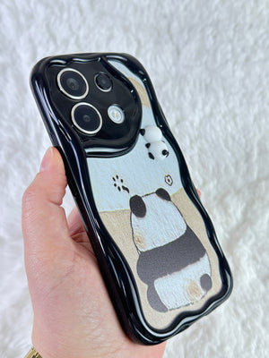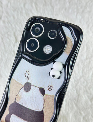 Sevimli panda temalı telefon kılıfı. Dalgalı kenarlı koruyucu tasarım. Arka yüzde gri tonlarında basit ama etkileyici panda çizimi. Üst kısımda, kamera yanında minik panda figürü. Telefon kamerasını özel şekillendirmeyle koruyor. Dokunsal ve görsel açıdan ilgi çekici doku. Minimal ve zarif görünüm. Çizilmelere ve darbelere karşı koruma sağlarken estetik sunar. Telefonu koruma ve kişiselleştirme isteyen kullanıcılara yönelik şık aksesuar.