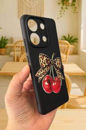 Redmi Note 13 Pro 4G Uyumlu Kiraz Leopar Fiyonk Desenli Silikon Darbe Emici Rubber Kılıf