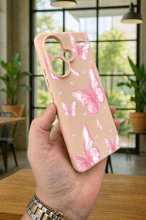 Redmi Note 13 Pro Plus PEMBE KELEBEK DESENLİ Silikon Darbe Emici Klasik Korumalı Rubber Kılıf