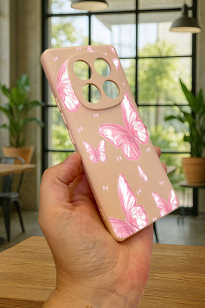 Redmi Note 14 Pro 5G PEMBE KELEBEK DESENLİ Silikon Darbe Emici Klasik Korumalı Rubber Kılıf