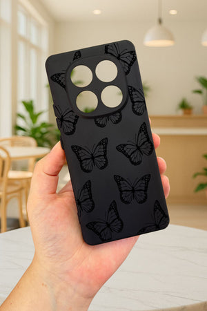 Redmi Note 14 Pro 5G SİYAH KELEBEK DESENLİ Silikon Darbe Emici Klasik Korumalı Rubber Kılıf
