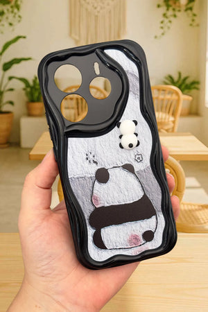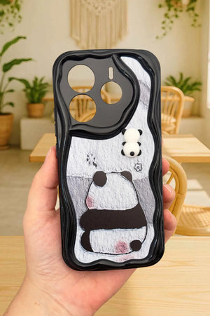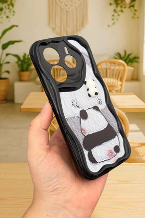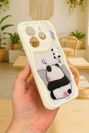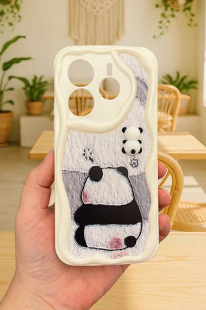 Sevimli panda temalı telefon kılıfı. Dalgalı kenarlı koruyucu tasarım. Arka yüzde gri tonlarında basit ama etkileyici panda çizimi. Üst kısımda, kamera yanında minik panda figürü. Telefon kamerasını özel şekillendirmeyle koruyor. Dokunsal ve görsel açıdan ilgi çekici doku. Minimal ve zarif görünüm. Çizilmelere ve darbelere karşı koruma sağlarken estetik sunar. Telefonu koruma ve kişiselleştirme isteyen kullanıcılara yönelik şık aksesuar.