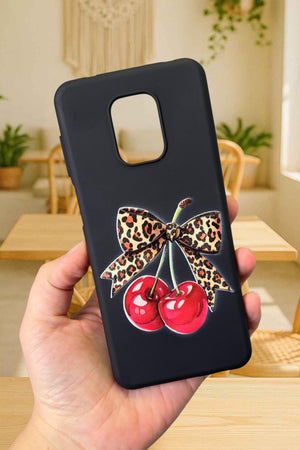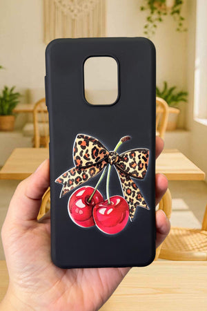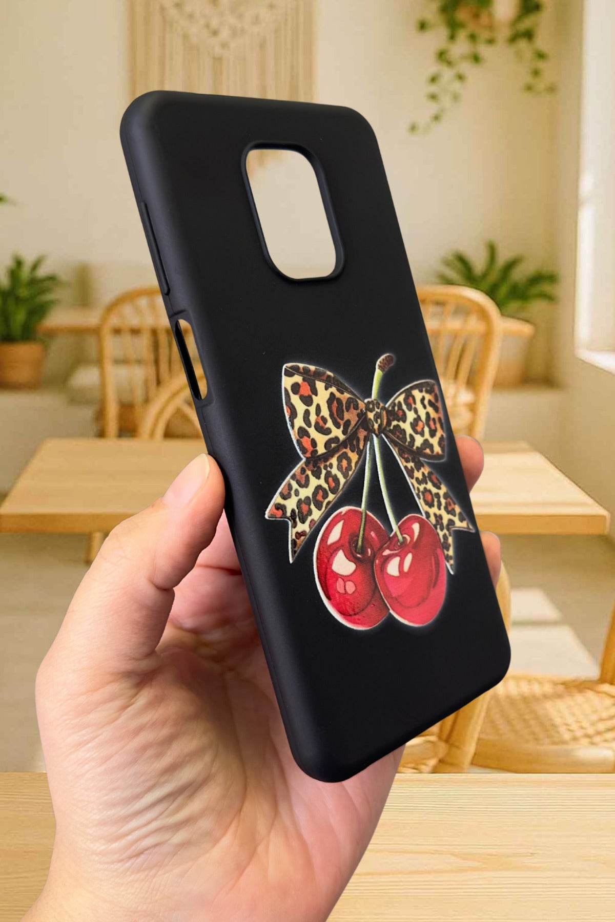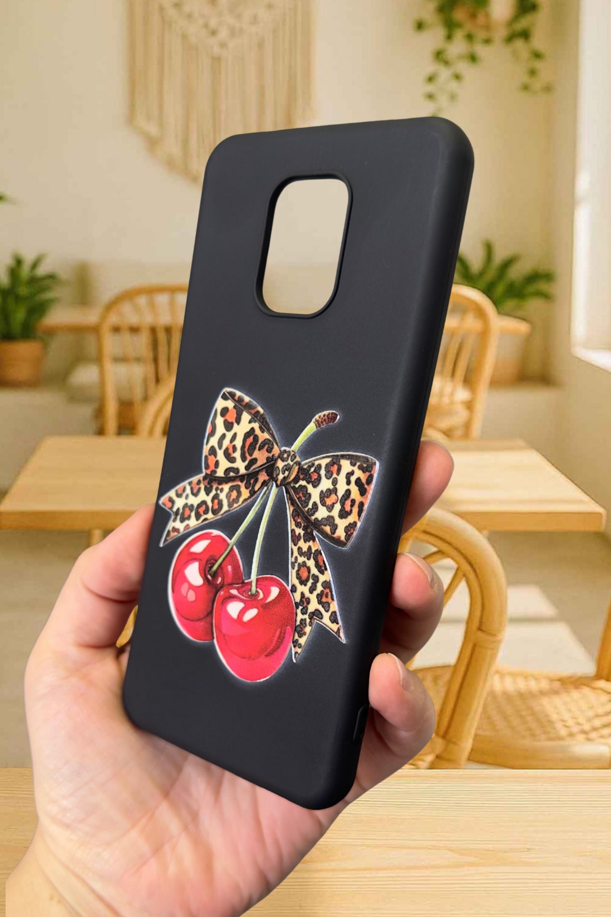 Redmi Note 9 Pro ve 9S Uyumlu Kiraz Leopar Fiyonk Desenli Silikon Darbe Emici Rubber Kılıf