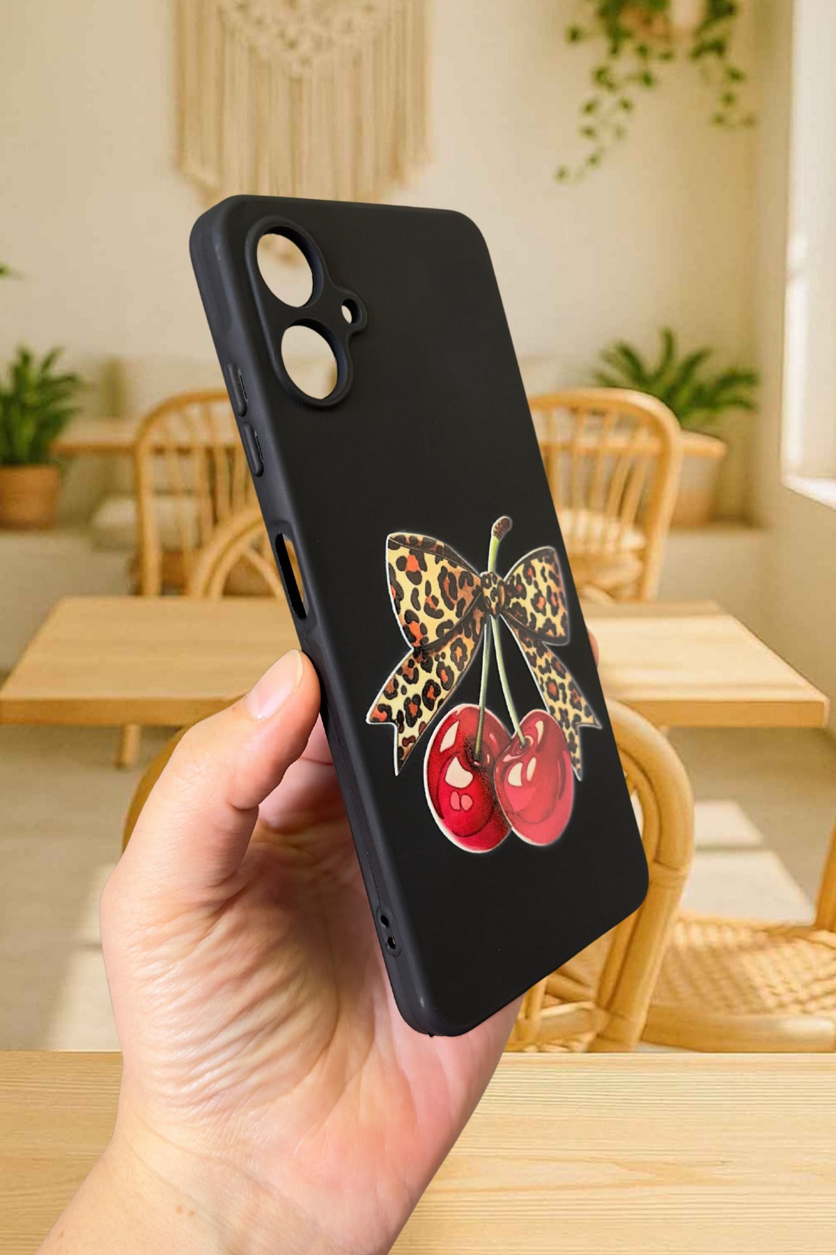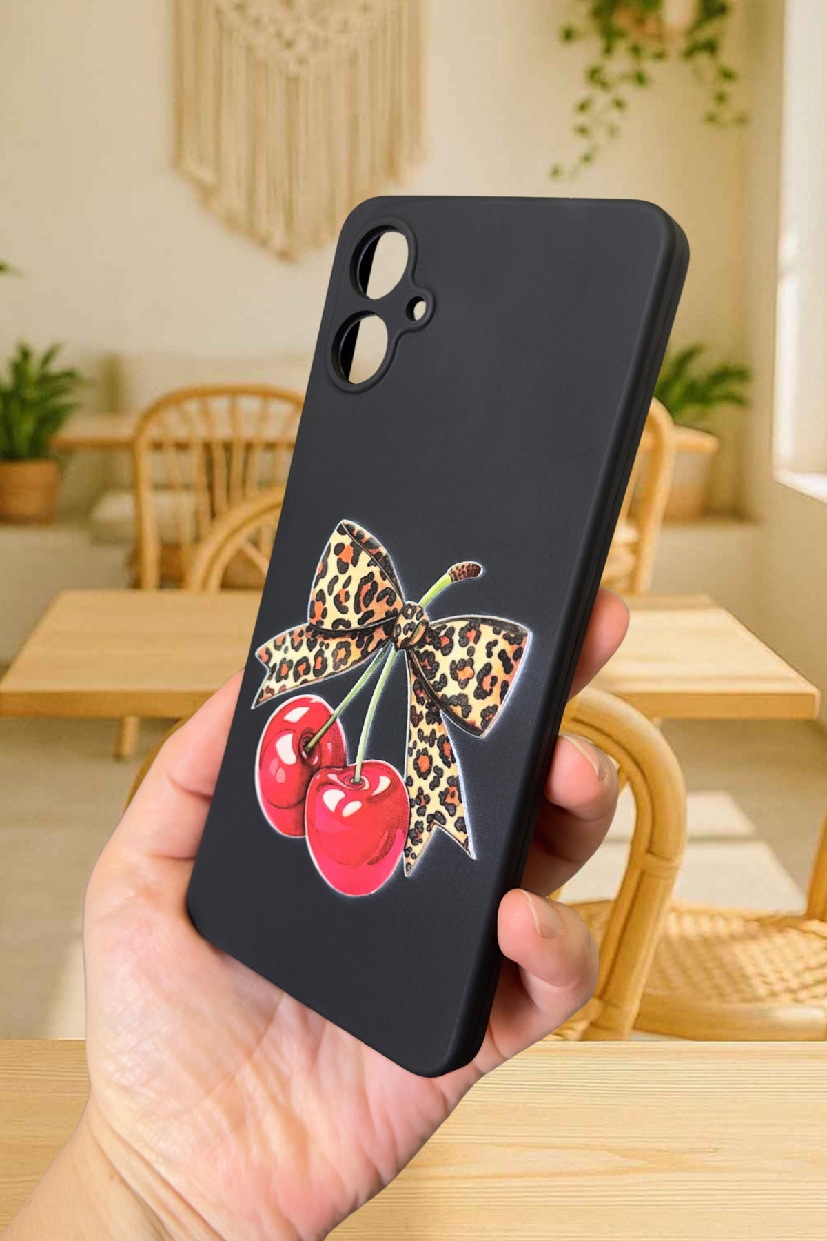 Samsung Galaxy A05 Uyumlu Kiraz Leopar Fiyonk Desenli Silikon Darbe Emici Rubber Kılıf
