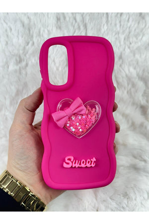 "Renkli Kalp Kurdele Detaylı Simli Dalgalı Sweety Kılıf" şık ve zarif bir telefon kılıfıdır.; Genellikle telefonunuzu hem koruyacak hem de estetik bir görünüm kazandıracak şekilde tasarlanmıştır.; İşte bu kılıfın başlıca özellikleri: Renkli Kalp Detayı: Kılıfın üzerinde sevimli, rengarenk kalp desenleri bulunur, bu da ona tatlı ve eğlenceli bir hava katar.; Kurdele Detayı: Kılıfın üst kısmında genellikle dekoratif bir kurdele detayı bulunur.; Bu, kılıfa daha feminen ve şık bir dokunuş sağlar.; Simli Yapı: Kılıfın yüzeyi parlak ve simli bir kaplamaya sahiptir, bu da ona dikkat çekici bir görünüm kazandırır.; Dalgalı Tasarım: Kılıfın kenarları dalgalı bir şekilde tasarlanmıştır, bu da telefonunuzu daha iyi kavrayabilmenizi sağlar ve hoş bir görsellik katar.; Koruma: Kılıf, telefonunuzu çizilmelere, darbelere ve düşmelere karşı koruyacak şekilde tasarlanmıştır.; Bu kılıf, tarzını yansıtmak isteyenler için hem işlevsel hem de estetik açıdan hoş bir seçenek sunuyor.