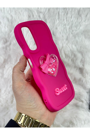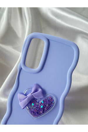 Samsung Galaxy A05s Renkli Kalp Kurdele Detaylı Simli Dalgalı Sweety Kılıf