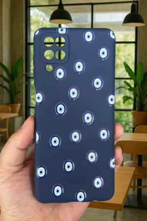 Samsung Galaxy A12 Uyumlu Nazar Boncuk Desenli Silikon Darbe Emici Klasik Korumalı Rubber Kılıf