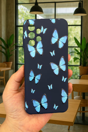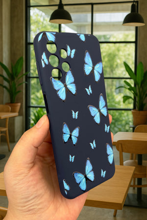 Samsung Galaxy A13 Uyumlu Mavi Kelebek Desenli Silikon Darbe Emici Klasik Korumalı Rubber Kılıf