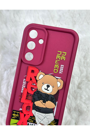 Samsung Galaxy A14 - Kabartmalı 3D Ayıcık Desenli Silikon Kamera Korumalı Lansman Ayıcıklı Kılıf