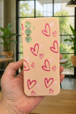 Samsung Galaxy A14 Uyumlu Pembe Kalp Desenli Silikon Darbe Emici Klasik Korumalı Rubber Kılıf