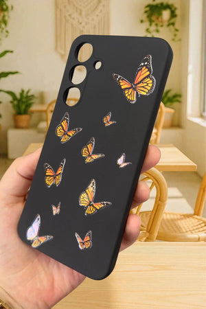Samsung Galaxy A15 - TURUNCU KELEBEK DESENLİ Silikon Darbe Emici Klasik Korumalı Rubber Kılıf