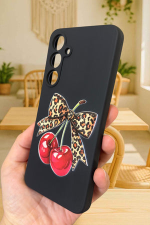 Samsung Galaxy A15 Uyumlu Kiraz Leopar Fiyonk Desenli Silikon Darbe Emici Rubber Kılıf