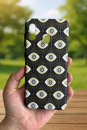 Samsung Galaxy A20 Uyumlu EVIL EYE Desenli Silikon Darbe Emici Klasik Korumalı Rubber Kılıf