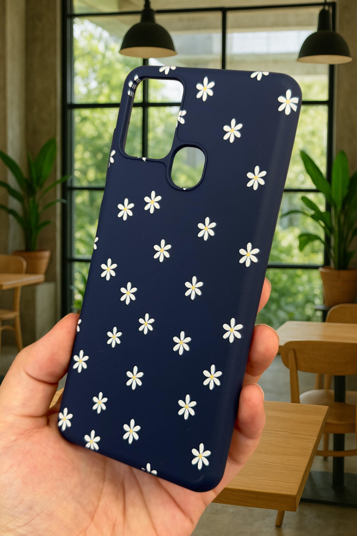 Samsung Galaxy A21s Uyumlu Mini Papatya Desenli Silikon Darbe Emici Klasik Korumalı Rubber Kılıf