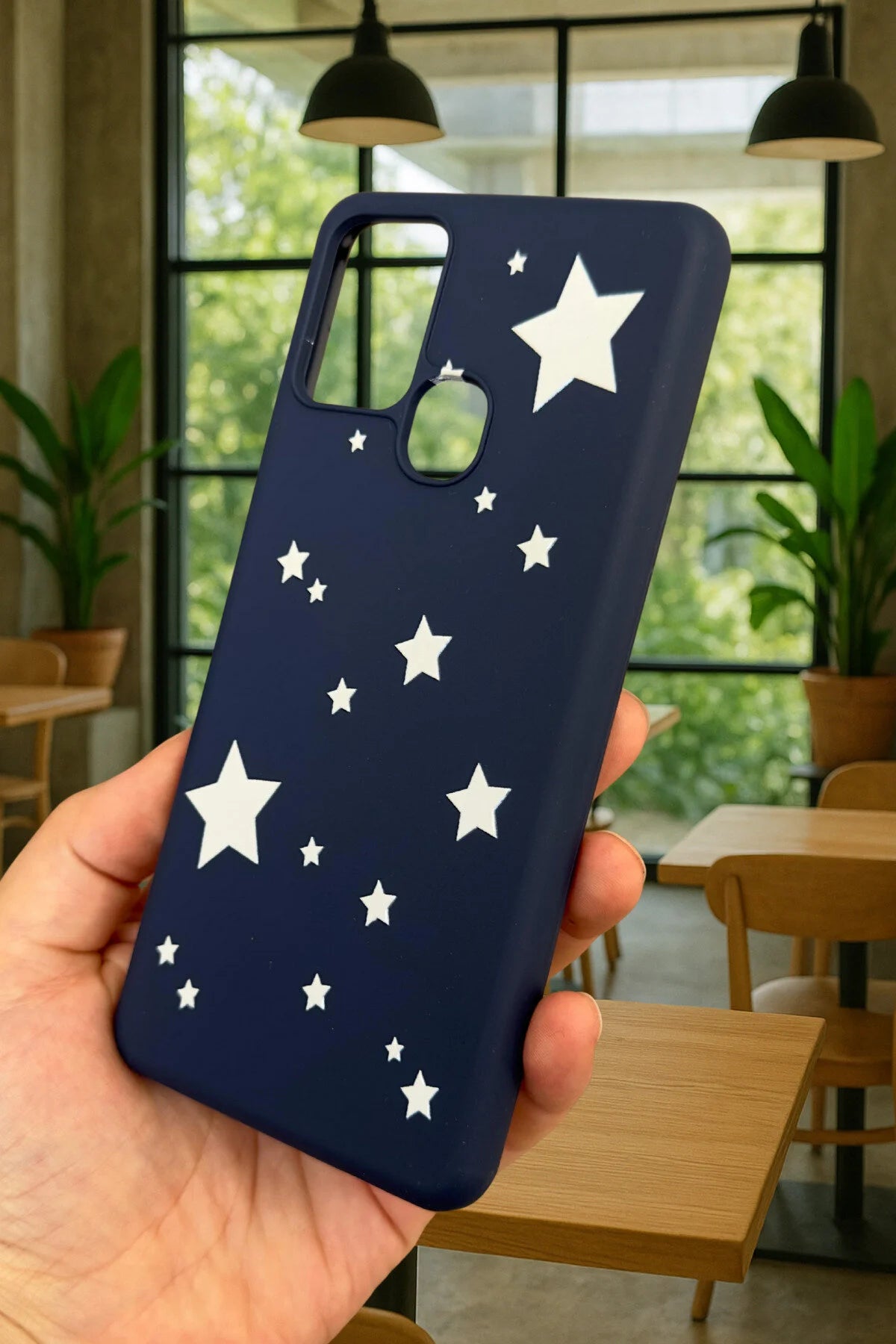 Samsung Galaxy A21s Uyumlu Mini Yıldız Desenli Silikon Darbe Emici Klasik Korumalı Rubber Kılıf