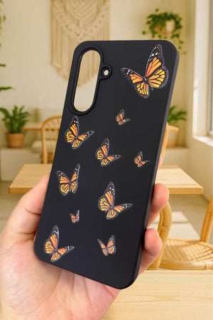 Samsung Galaxy A26 - Turuncu Kelebek Desenli Silikon Darbe Emici Klasik Korumalı Rubber Kılıf