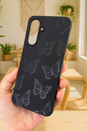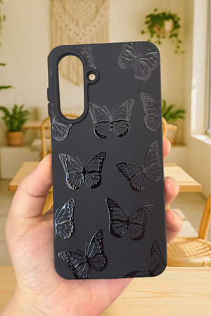 Samsung Galaxy A26 Uyumlu Siyah Kelebek Desenli Silikon Darbe Emici Klasik Korumalı Rubber Kılıf