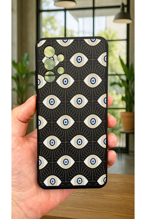 Samsung Galaxy A32 -EVIL EYE DESENLİ Silikon Darbe Emici Klasik Korumalı Rubber Kılıf