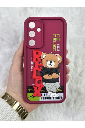 Samsung Galaxy A34 - Kabartmalı 3D Ayıcık Desenli Silikon Kamera Korumalı Lansman Ayıcıklı Kılıf