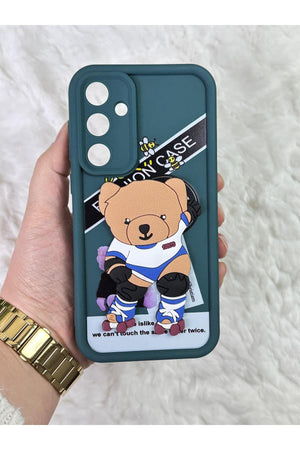 Silikonlu Lansman Ayıcıklı Kılıf, şık ve dikkat çekici tasarımıyla telefonunuzu hem korur hem de tarzınıza zarif bir dokunuş katar.; Yüksek kaliteli sert silikon malzemesi, darbeye karşı dayanıklılık sağlarken çizilmelere karşı güçlü bir koruma sunar.; Kılıfın üzerindeki sevimli ayıcık deseni, ürünün hem eğlenceli hem de modern bir görünüm kazanmasını sağlar.; Özellikle yeşil renk seçeneğiyle doğal ve ferah bir stil yakalayan bu model, cihazınıza tam uyum sağlayarak tüm bağlantı noktalarına ve düğmelere kolay erişim imkanı sunar.; Hem günlük kullanım hem de özel günler için ideal bir aksesuar olarak öne çıkar.; "