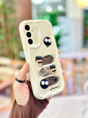 Sevimli ve eğlenceli tasarımlı akıllı telefon kılıfı. Kahve temalı şirin çizimlerle süslenmiş - içecek bardakları ve büyük gözlü sevimli yaratık figürleri bulunuyor. Minimalist ama esprili bir görünüme sahip. Çizilmelere ve darbelere karşı koruma sağlarken kişiselleştirilmiş bir stil sunuyor. Kahve tutkunları ve eğlenceli aksesuarları sevenler için ideal. Hem koruyucu hem de kişisel ifade imkanı sağlayan şık bir telefon kılıfı. Günlük kullanıma renk katacak ve telefonunuzu güvende tutacak modern bir aksesuar.