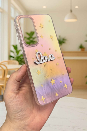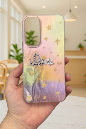 Samsung Galaxy A34 Parlak Taşlı “Love” Yazılı Yıldız Desenli Telefon Kılıfı – Pastel Renkli Star Love Kılıf