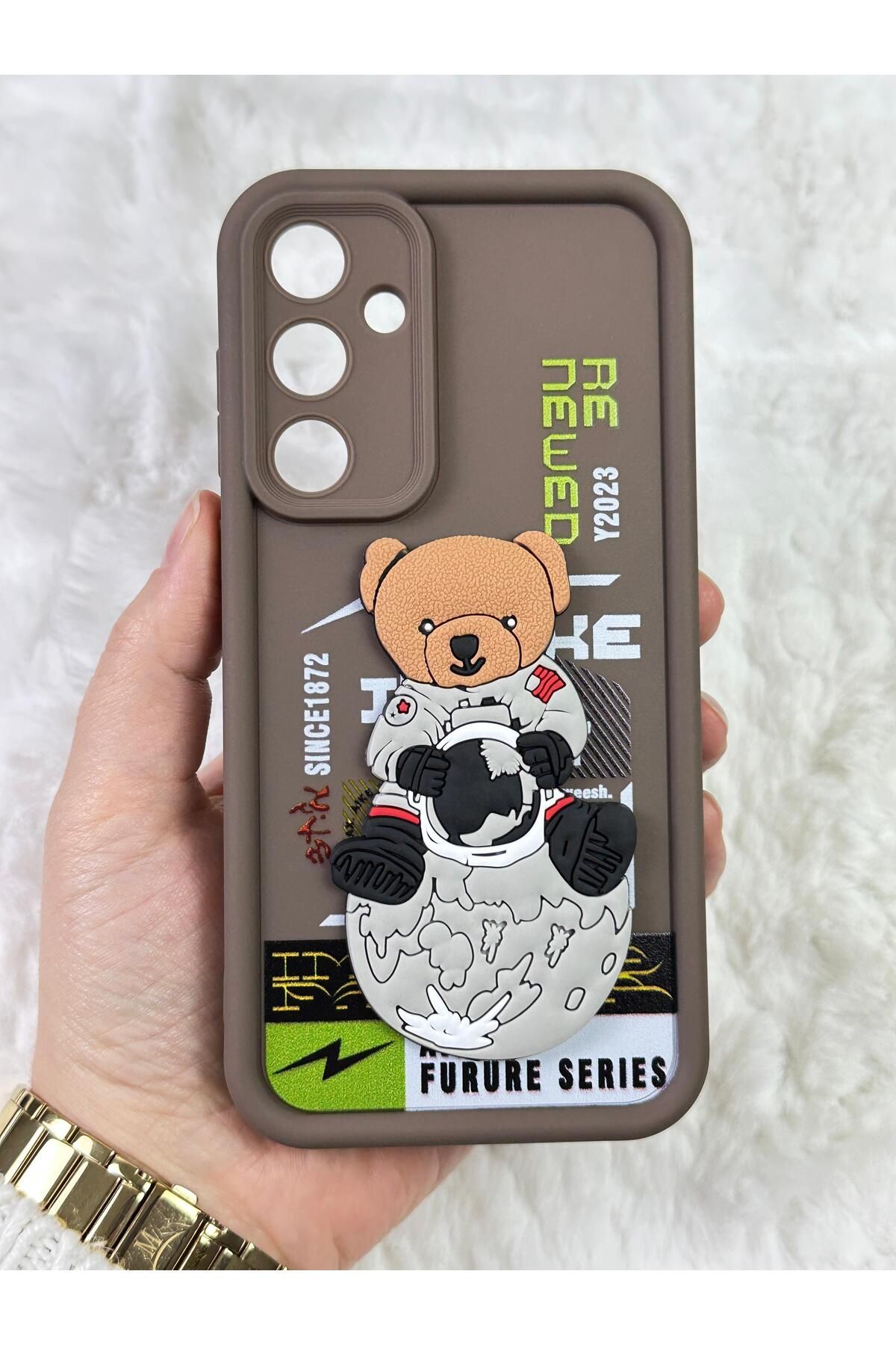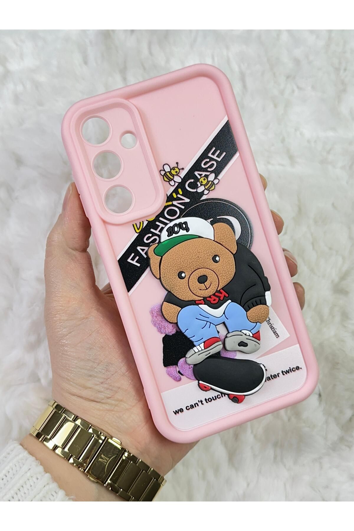 Samsung Galaxy A35 - Kabartmalı 3D Ayıcık Desenli Silikon Kamera Korumalı Lansman Ayıcıklı Kılıf