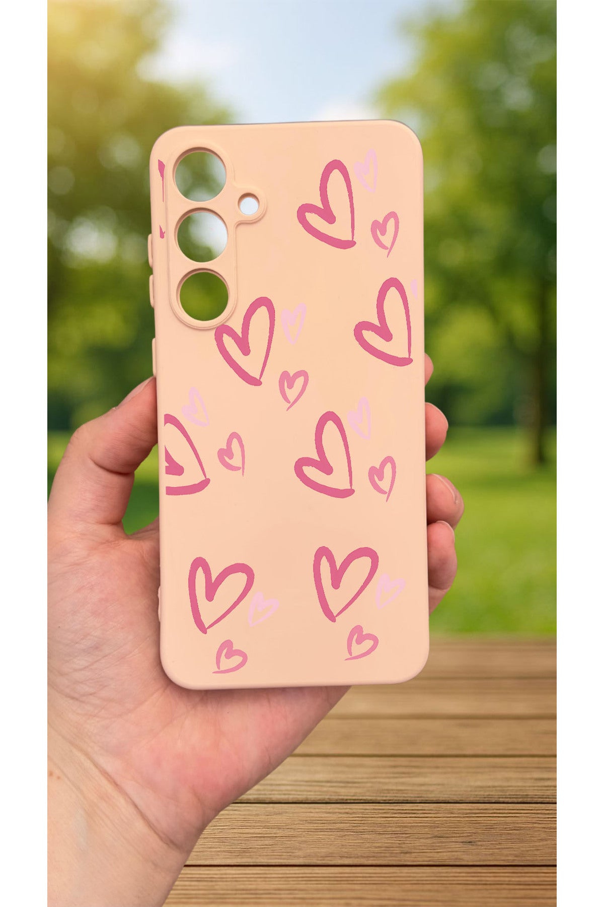 Samsung Galaxy A35 -PEMBE KALP DESENLİ Silikon Darbe Emici Klasik Korumalı Rubber Kılıf