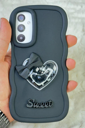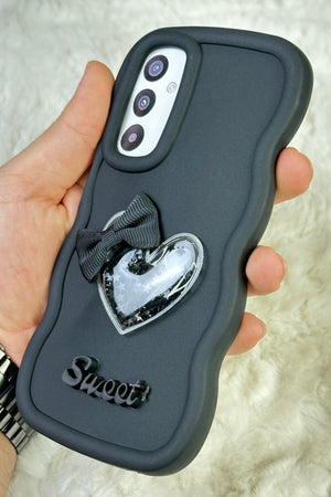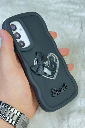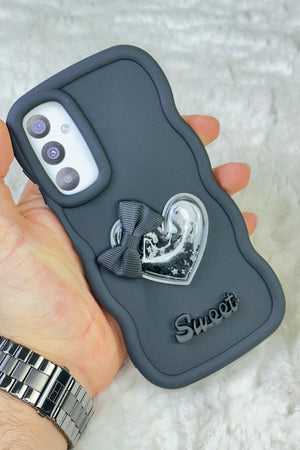 Samsung Galaxy A35 Uyumlu Renkli Kalp Kurdele Detaylı Simli Dalgalı Sweety Kılıf