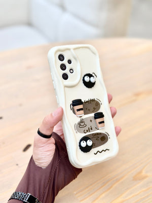 Sevimli ve eğlenceli tasarımlı akıllı telefon kılıfı. Kahve temalı şirin çizimlerle süslenmiş - içecek bardakları ve büyük gözlü sevimli yaratık figürleri bulunuyor. Minimalist ama esprili bir görünüme sahip. Çizilmelere ve darbelere karşı koruma sağlarken kişiselleştirilmiş bir stil sunuyor. Kahve tutkunları ve eğlenceli aksesuarları sevenler için ideal. Hem koruyucu hem de kişisel ifade imkanı sağlayan şık bir telefon kılıfı. Günlük kullanıma renk katacak ve telefonunuzu güvende tutacak modern bir aksesuar.