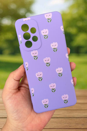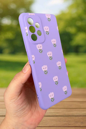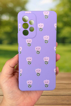 Samsung Galaxy A53 Uyumlu Mini Lale Desenli Silikon Darbe Emici Klasik Korumalı Rubber Kılıf