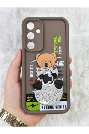 Samsung Galaxy A54 - Kabartmalı 3D Ayıcık Desenli Silikon Kamera Korumalı Lansman Ayıcıklı Kılıf