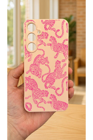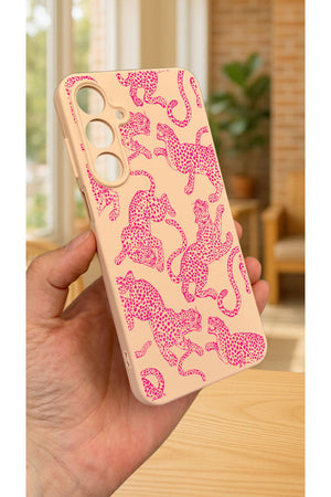 Samsung Galaxy A55 -PEMBE LEOPAR DESENLİ Silikon Darbe Emici Klasik Korumalı Rubber Kılıf