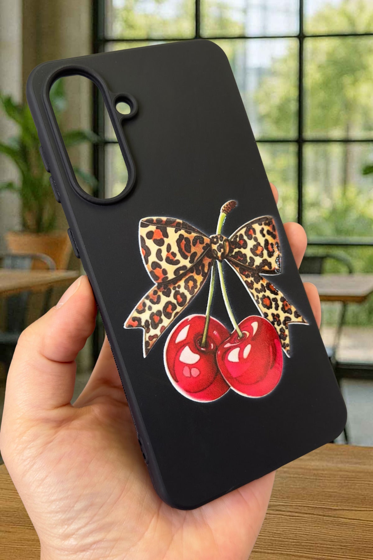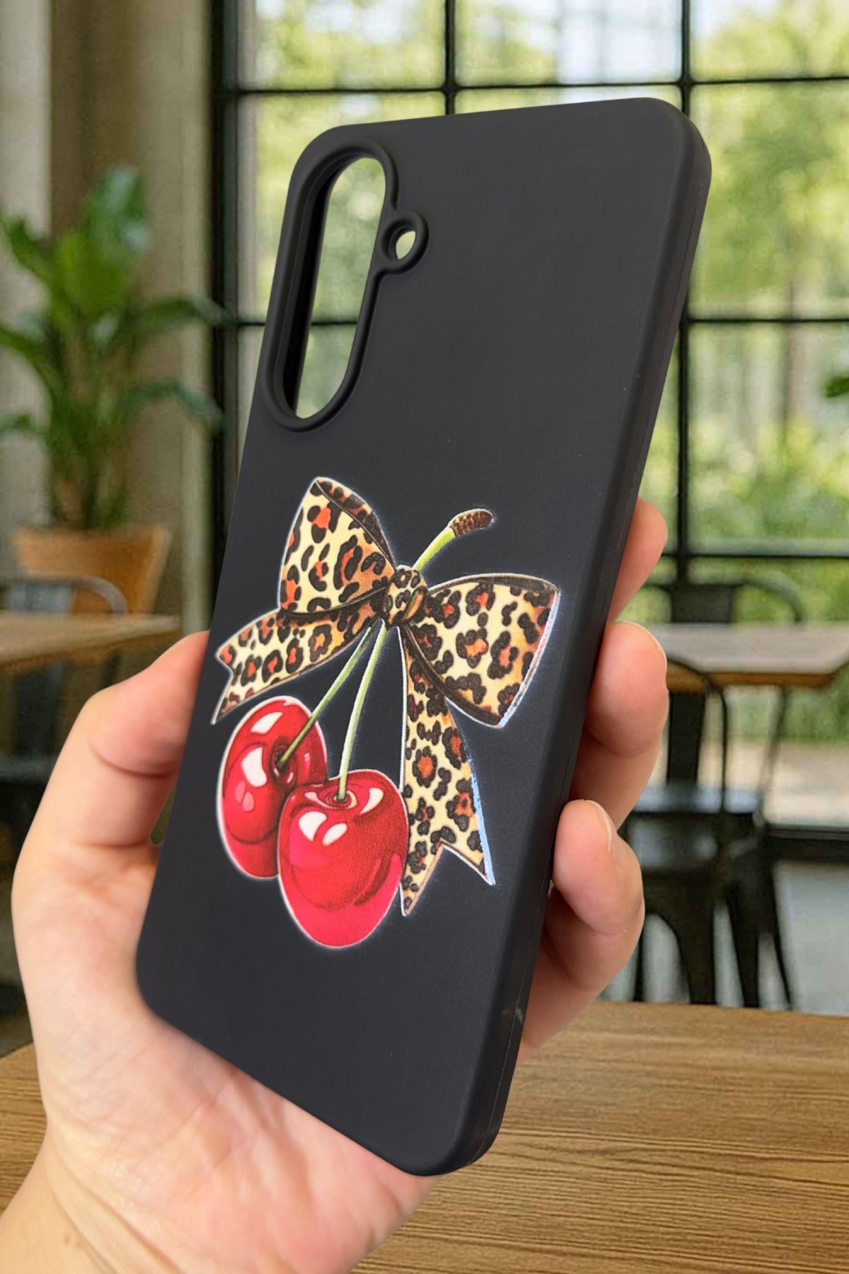 Samsung Galaxy A56 Uyumlu Kiraz Leopar Fiyonk Desenli Silikon Darbe Emici Klasik Rubber Kılıf