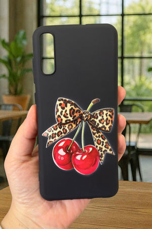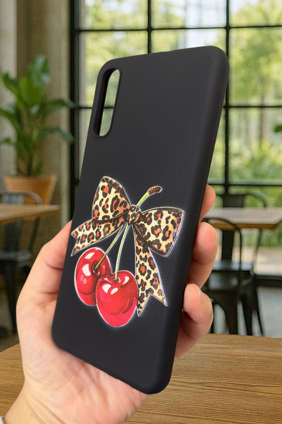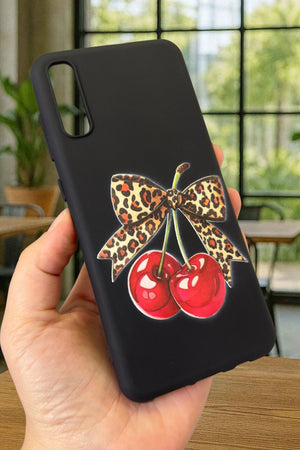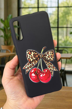 Samsung Galaxy A70 Uyumlu Kiraz Leopar Fiyonk Desenli Silikon Darbe Emici Klasik Rubber Kılıf