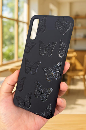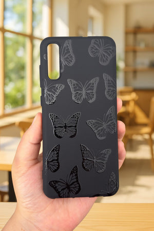 Samsung Galaxy A70 Uyumlu Siyah Kelebek Desenli Silikon Darbe Emici Klasik Korumalı Rubber Kılıf