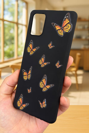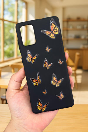 Samsung Galaxy A71 - Turuncu Kelebek Desenli Silikon Darbe Emici Klasik Korumalı Rubber Kılıf